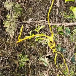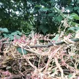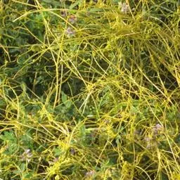 症状特点:苗木和花卉均可受菟丝子寄生危害。花卉苗木受害时,枝条被寄生物缠绕而生缢痕,生育不良,树势衰落,观赏效果受影响,严重时嫩稍和全株枯死。成株受害,由于菟丝子生长迅速而繁茂,极易把整个树冠覆盖,不仅影响花卉苗木叶片的光合作用,而且营养物质被菟丝子所夺取,致使叶片黄化易落,枝稍干枯,长势衰落,轻则影响植株生长和观赏效果,重则致全株死亡。