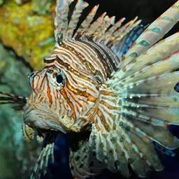 斑鳍蓑鲉是鲉科,蓑鲉属硬骨鱼。体长25-40厘米,体表黄色,布有红色至棕色条纹。背部有毒棘,胸鳍羽…