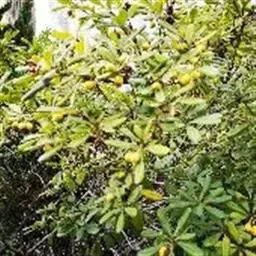 果实长约1厘米,成熟时黄红色,干后果皮薄革质,稍发亮,有残存花柱;种子1个,黑色,基部有黄色流苏状的假种皮。花期4-5月。