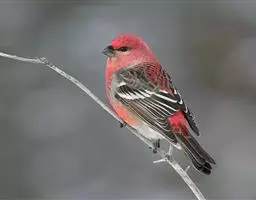 藏朱雀:全长约17-18厘米。雄鸟头部深红色具光辉,喉部暗红色具白色点斑;背部灰白色,各羽具玫瑰红…