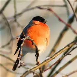 红腰朱雀:体长12-14厘米,小型鸟类。雄鸟前额和眉纹玫瑰粉红色,头顶和一宽的贯眼带深红褐色,背红…