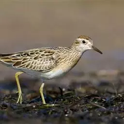 青脚滨鹬是丘鹬科滨鹬属鸟类。小型涉禽,体长12-17厘米。外形大小和长趾滨鹬相似。嘴黑色,脚黄绿色。…