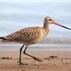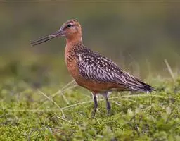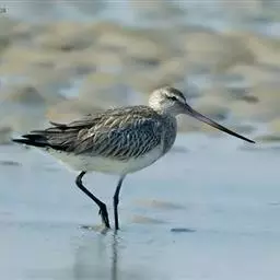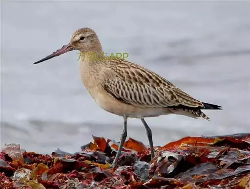 斑尾塍鹬(学名:Limosa lapponica):体重245-320克,体长326-386毫米,体型中等。繁殖期羽多有棕栗色。嘴较尾长,直或略微向上翘。跗蹠长度居中,后缘具盾状鳞。中趾与外趾之间具退化的蹼,中趾外侧有栉状缘。冬季头顶灰白色,具黑褐色纵纹,肩、上背黑褐色,羽缘浅棕,下背、腰、尾上覆羽白色沾棕,具灰褐色羽干纹,尾羽棕,具灰褐色横斑;眉纹棕白,颏、喉白色,前胸浅褐色,其余下体淡棕。嘴长而上翘,红色,尖端黑色;脚黑褐。