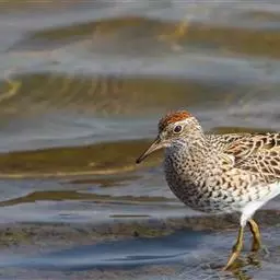 林鹬体长约20厘米,体型略小,纤细,褐灰色,腹部及臀偏白,腰白。上体灰褐色而极具斑点;眉纹长,…