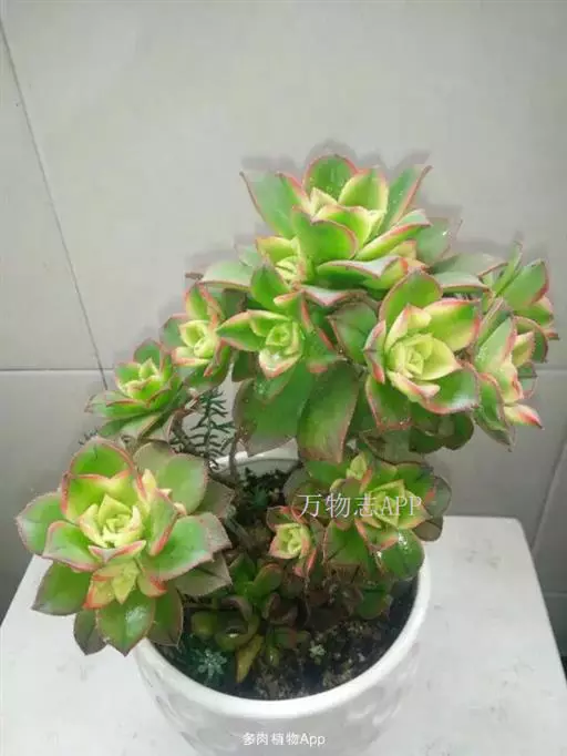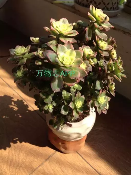 红缘莲花掌属蔷薇目、景天科植物,原产大西洋的加那利群岛。质厚,蓝绿色,被白霜,叶缘红褐色。聚伞花序,…