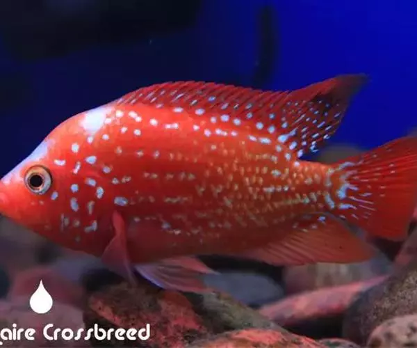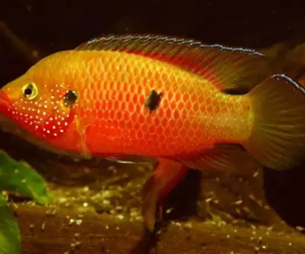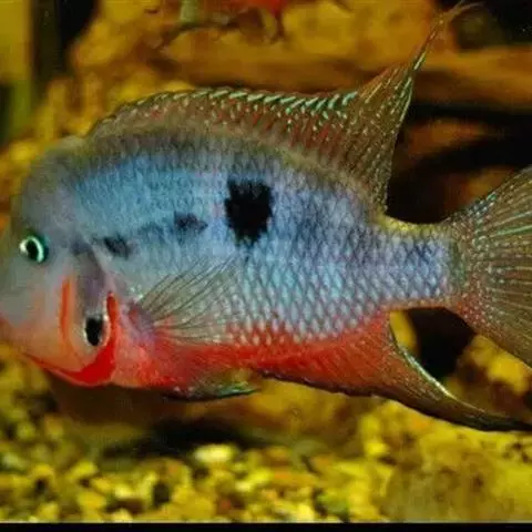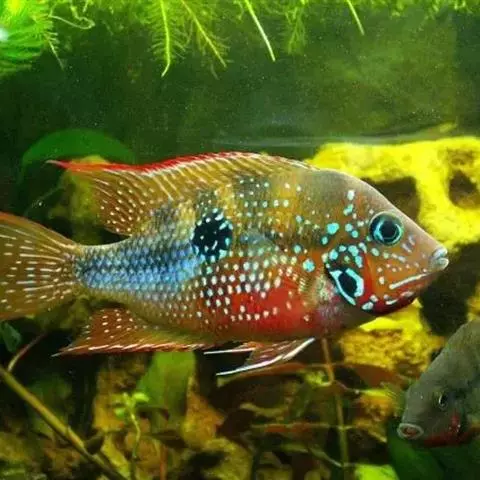 红宝石鱼属非三湖慈鲷类的非洲慈鲷,体形较短鲷大。该种鱼的特点在于全身靓丽的蓝色斑点和尾柄前面的大型黑斑。红宝石的名字来源于在它们繁殖期间会出现艳丽的红色。而实际上本种鱼有一些全身永远艳红的个体,但是在市场上很难看到。原产地:从加纳到多哥的刚果河、尼罗河流域的森林溪流中;食性:肉食性且有鱼食性会食小鱼。活动水层:全部水层,较喜欢在底层活动。产地:非洲尼罗河流域和利比亚、尼日尔、刚果等国。