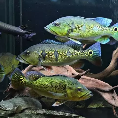 眼点丽鱼又称皇冠三间、孔雀鲈,为鲈形目,慈鲷科,丽鱼属一种淡水鱼类。…