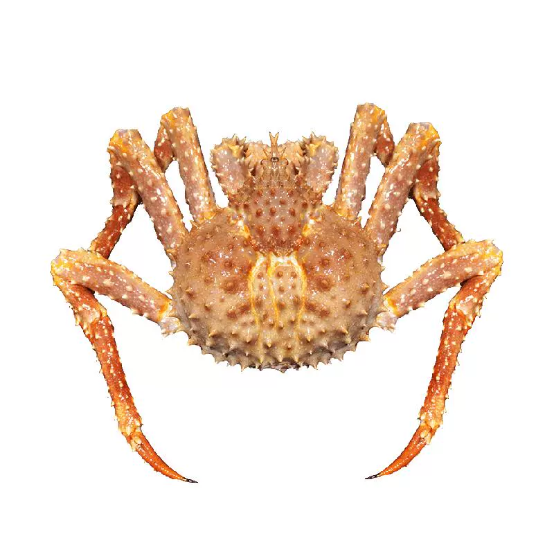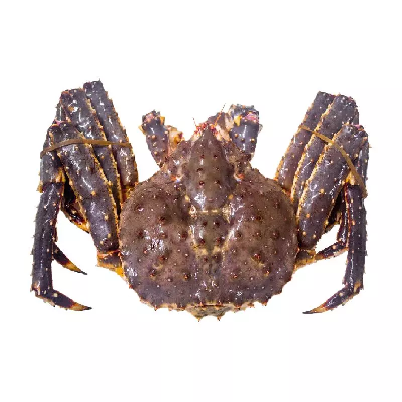 帝王蟹又名石蟹或岩蟹,即石蟹科的甲壳类,不是真正的螃蟹,它们主要分布在寒冷的海域。因其体型巨大而得名,素有“蟹中之王”的美誉。帝王蟹属于深海蟹类,生存深度达850米之深,生存水温在2-5℃。帝王蟹能够生存的最低水温是1.4摄氏度。