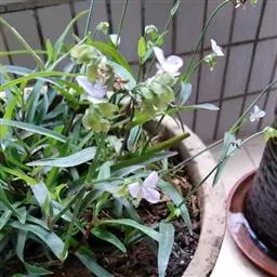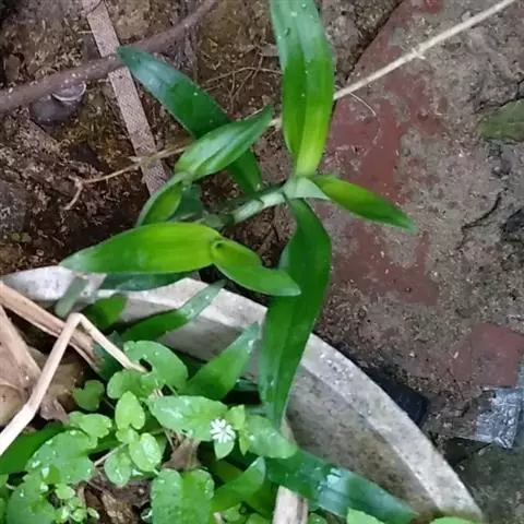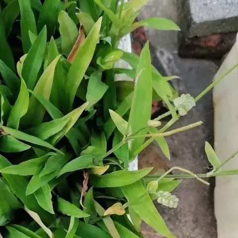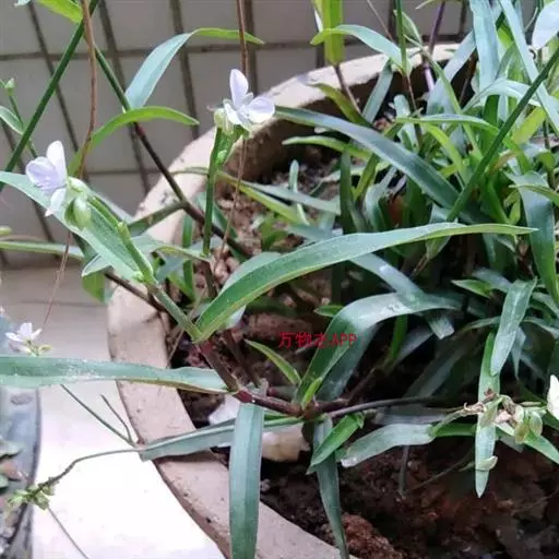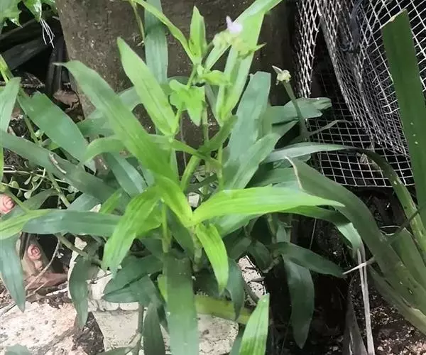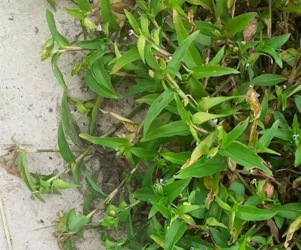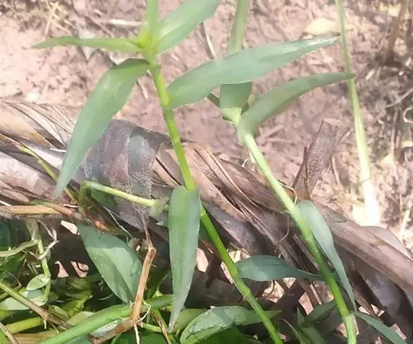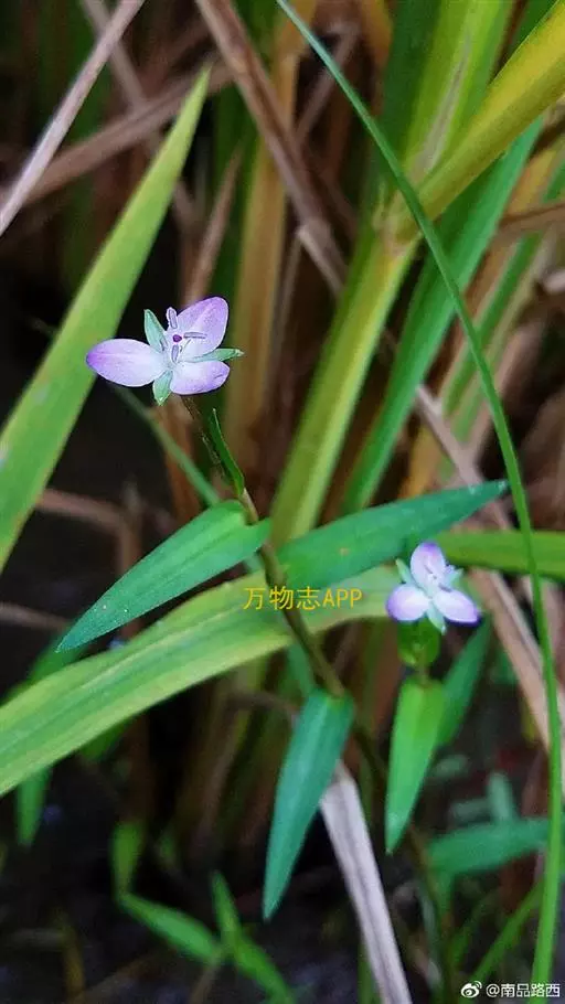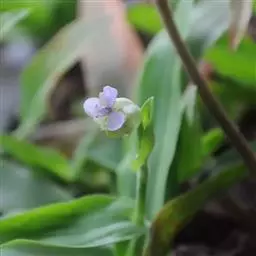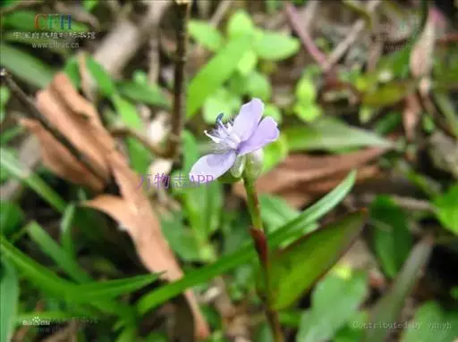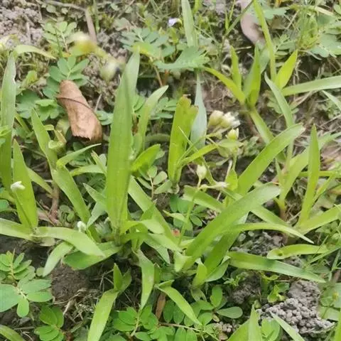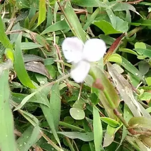 水竹叶又名:竹叶党。多年生草本,具长而横走根状茎。根状茎具叶鞘,节间长约6厘米,节上具细长须状根。茎肉质,下部匍匐,节上生根,上部上升,通常多分枝,长达40厘米,节间长8厘米,密生一列白色硬毛,这一列毛与下一个叶鞘的一列毛相连续。叶无柄,仅叶片下部有睫毛和叶鞘合缝处有一列毛,这一列毛与上一个节上的衔接而成一个系列,叶的他处无毛;叶片竹叶形,平展或稍折叠,长2-6厘米,宽5-8毫米,顶端渐尖而头钝。花序通常仅有单朵花,顶生并兼腋生,花序梗长1-4厘米,顶生者梗长,腋生者短,花序梗中部有一个条状的苞片,有时苞片腋中生一朵花;萼片绿色,狭长圆形,浅舟状,长4-6毫米,无毛,果期宿存;花瓣粉红色,紫红色或蓝紫色,倒卵圆形,稍长于萼片;花丝密生长须毛。蒴果卵圆状三棱形,长5-7毫米,直径3-4毫米,两端钝或短急尖,每室有种子3颗,有时仅1-2颗。种子短柱状,不扁,红灰色。花期9-10月(但在云南也有5月开花的),果期10-11月。