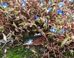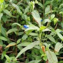 干燥全草呈团块状,灰绿色。茎圆柱形,多分枝,下部节上生褐色须根。叶褶皱,平展者呈线状披针形,长1.5-3.5cm,宽4-6mm,先端渐尖,基部鞘状抱茎,全缘,绿色带紫色条纹。枝上部叶腋内有簇生花1-5朵,花萼绿色,3枚;花瓣蓝紫色;能育雄蕊3,不育雄蕊3枚;子房长圆形无柄。蒴果两端钝,长5-7mm。气微,味甘。以干燥,枝、叶多,色绿者为佳。