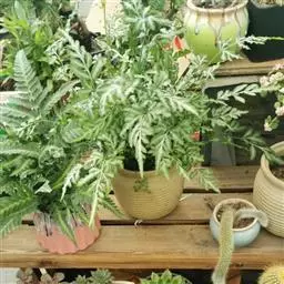 凤尾蕨 中国有丰富的凤尾蕨资源,它们虽然没有鲜艳夺目的花与果实,然而它们以千姿百态的叶形、叶姿和青翠碧绿的色彩,使人赏心悦目,在观赏植物中占有重要地位。凤尾蕨株形优美,格调清新,极富观赏性,是线条美的典范,越来越博得众人的喜爱。其适合园林栽培,更适宜美化家居,也是插花不可少的衬托叶。