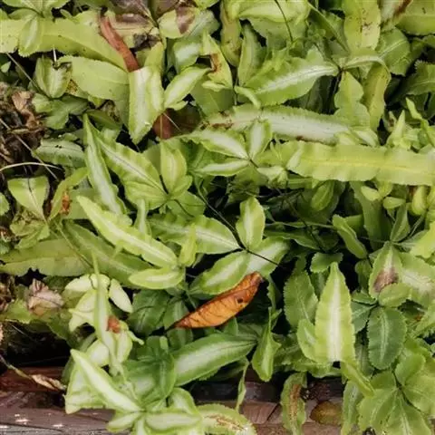 凤尾蕨 风尾蕨的许多营养物质是农田蔬菜所不及的,糖、Vc、胡萝卜素含量都比普通蔬菜高。嫩叶可食,称“蕨菜”,蕨菜质地肥嫩,色青翠。春季采未展开的嫩叶,开水烫后即可做菜,清脆鲜嫩、香味独特,人们称其“山珍之王”,被日本人誉为“雪果三珍”;晒成干菜,干品蕨菜含粗蛋白24.1%、粗脂肪1.5%、粗纤维10.4%、无氮提取物43.3%、灰分7.1%、钙0.3%、磷0.6%;也可腌渍,幼叶经腌制后脆香可口;也可制成罐头食品。
