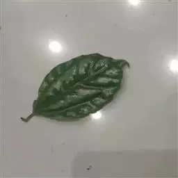 叶多汁,干时变纸质,同对的近等大,倒卵形,长2.5-6厘米,宽1.5-3厘米,先端骤凸,基部楔形或钝圆,边缘自下部以上有数枚不整齐的浅牙齿或啮蚀状,上面深绿色,中央有2条(有时在边缘也有2条)间断的白斑,下面淡绿色,钟乳体梭形,长0.3-0.5毫米,两面明显,基出脉3,其侧生二条稍弧曲,伸达上部与邻近的侧脉环结,二级脉在上部约3对,明显,下部的不明显,外向的二级脉数对,在近边缘处环结;叶柄长0.7-1.5厘米;托叶草质,淡绿色,干时变棕色,长圆形,长1-1.3厘米,早落。