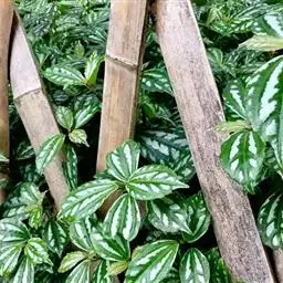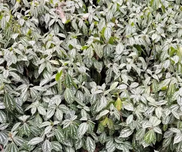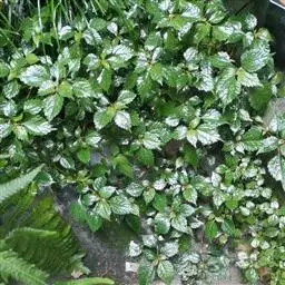 花叶冷水花(学名:Pilea cadierei Gagnep.),多年生草本;无毛,具匍匐根茎。茎肉质,高15-40厘米。叶多汁,干时变纸质,倒卵形,先端骤凸,基部楔形或钝圆,上面深绿色,下面淡绿色,钟乳体梭形,两面明显;叶柄长0.7-1.5厘米;托叶淡绿色,干时变棕色,早落。花雌雄异株;雄花序头状,团伞花簇径6-10毫米;苞片外层的扁圆形,内层的圆卵形,稍小。雄花倒梨形,梗长2-3毫米;花被片4,合生至中部,近兜状;雄蕊4;退化雌蕊圆锥形,不明显。长约1毫米;花被片近等长,略短于子房。花期9-11月。
