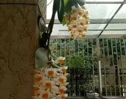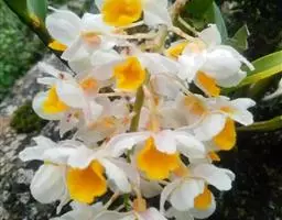 景洪石斛:茎直立,细圆柱形,多少木质化,上部常分枝,基部上方2-3个节间膨大呈纺锤形;膨大部分的茎…