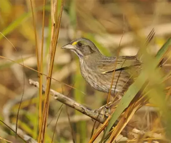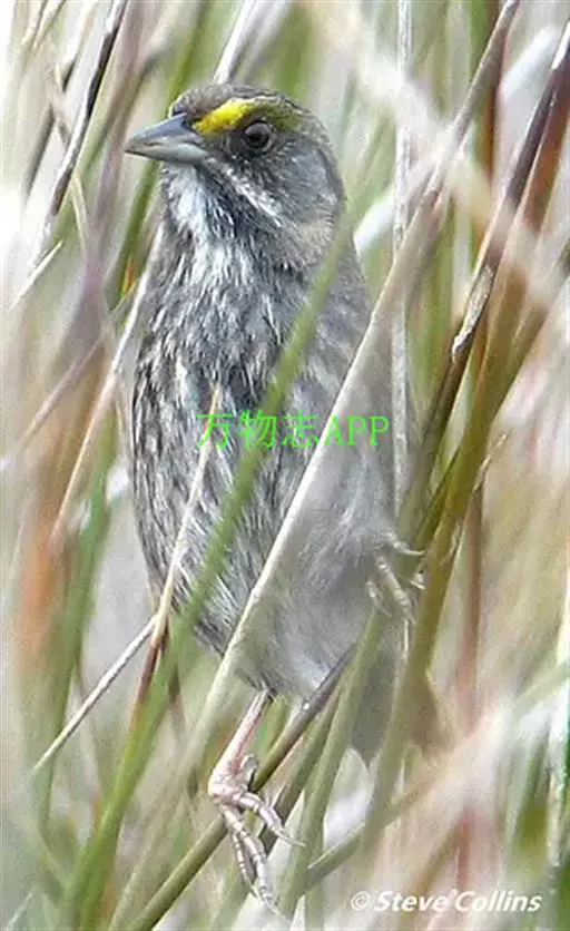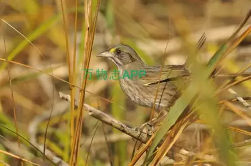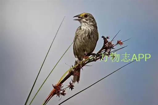 海滨沙鹀(学名:Ammodramus maritimus):小型鸣禽,体长13-15厘米,翼展18-20厘米。一般主食植物种子。喙为圆锥形,与雀科相比较为细弱,上下喙边缘不紧密切合而微向内弯,因而切合线中略有缝隙;体羽大多似麻雀,外侧尾羽有较多的白色。非繁殖期常集群活动,繁殖期在地面或灌丛内筑碗状巢,产卵3-4枚,一般由雌鸟孵化12-13天,雏期约等于孵化期。