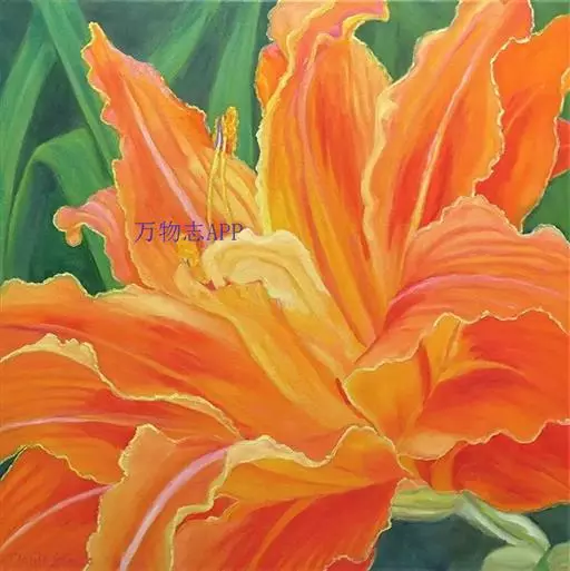 根近肉质,中下部有纺锤状膨大;叶一般较宽;花早上开晚上凋谢,无香味,桔红色至桔黄色,内花被裂片下部一般有∧形采斑。花果期为5-7月。