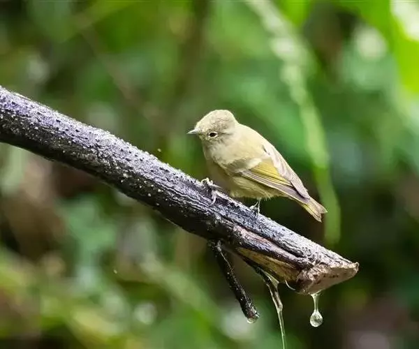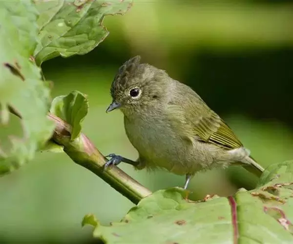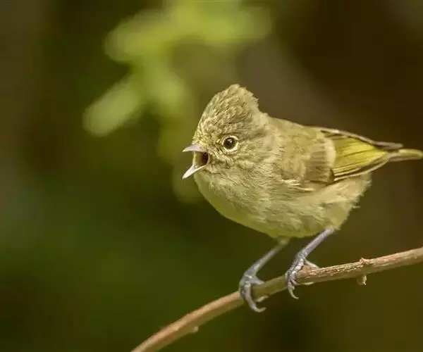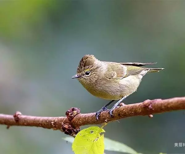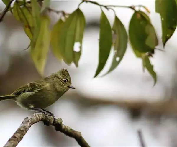 体小(10厘米)而异型的山雀。外形似柳莺或啄花鸟。体羽大致橄榄色,羽冠短,狭窄的黄色眼圈,浅黄色短眉纹有时被覆盖;腿甚显粗壮。与火冠雀的区别在具冠羽而腰部无浅色反差。