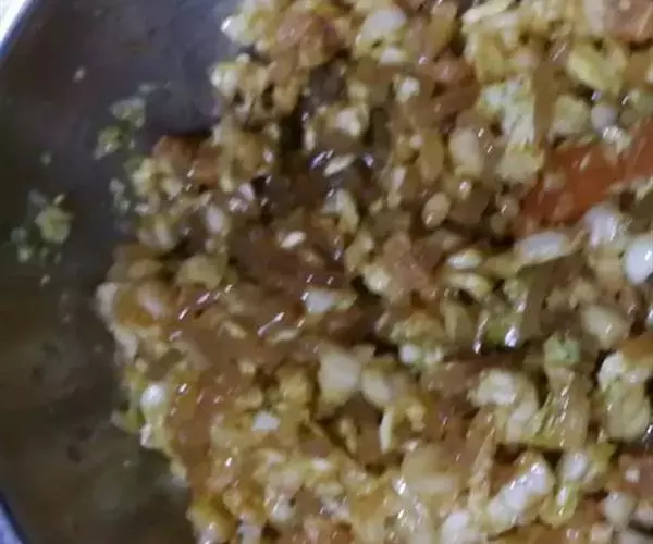 先将青刚菜洗净沥干水份,切大块,拌入大匙盐,腌清廿分钟后剁碎 ,挤干水份。