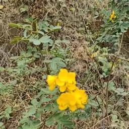 双荚决明(学名:Senna bicapsularis (L.) Roxb.)是豆科,决明属多年生亚灌木状披散草本植物,高可达75厘米,枝条、叶柄、叶轴疏柔毛。小叶对生,线状镰形,顶端有小凸尖,基部近圆形;托叶线状锥形,花腋生,总状花序;总花梗顶端有小苞片;萼片卵状长圆形,顶端渐尖,花瓣黄色,卵形,花药长圆形;子房无柄,荚果扁平而直,8-9月开花;10-12月结果。