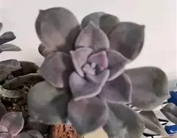 紫珍珠是景天科石莲花属的多年生肉质草本植物。植株中小型;叶片肉质,匙形,呈莲座状紧密排列;叶片粉紫色,…