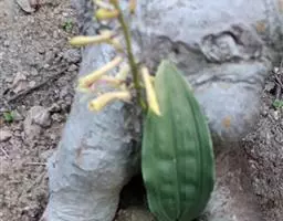 盆距兰 D.Don):茎长5-30厘米,粗5-8毫米,常弧形弯曲,具多数叶。叶二列互生,稍肉质,…