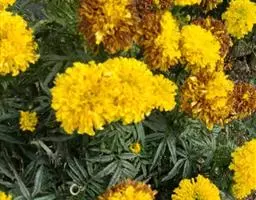 万寿菊是菊科万寿菊属一年生草本植物,别名孔雀菊、缎子花、臭菊花、西番菊、红黄草、小万寿菊、臭芙蓉、孔雀草。万寿菊茎近基部分枝。叶羽状分裂,长5-10厘米,宽4-8厘米,裂片长椭圆形或披针形,具锐齿,上部叶裂片齿端有长细芒,叶缘有少数腺体。头状花序单生,径5-8厘米,花序梗顶端棍棒状。总苞长1.8-2厘米,径1-1.5厘米,杯状,顶端具尖齿。舌状花黄或暗橙黄色,长2.9厘米,舌片倒卵形,长1.4厘米,基部成长爪,先端微弯缺。管状花花冠黄色,长约9毫米,冠檐5齿裂。瘦果线形,被微毛;冠毛有1-2长芒和2-3短而钝鳞片。花期7-9月。万寿菊中国各地均有栽培,在广东和云南南部、东南部已归化,国外原产墨西哥。万寿菊对土壤要求不严,但以肥沃疏松排水良好的土壤为好。耐移栽,种子发芽适温21-24℃,植株生长适合温度为20-29℃。喜温暖和阳光充足的环境,不