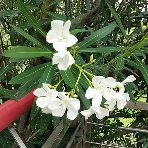白花夹竹桃是夹竹桃科、夹竹桃属植物夹竹桃的栽培品种。常绿直立大灌木,枝条灰绿色;嫩枝条具稜,被微毛,…