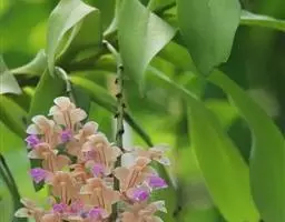 大序隔距兰 Garay):茎直立,扁圆柱形,伸长,达20余厘米,通常粗5-8毫米,被叶鞘所包,…