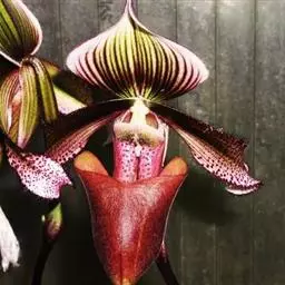 紫纹兜兰 Stein)是兰科兜兰属的地生或半附生植物。叶基生,叶片狭椭圆形或长圆状椭圆形,…