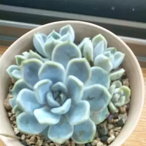 蓝石莲是景天科、拟石莲花属的多肉植物。茎部粗壮,成熟植株茎部木质化。叶片莲座型密集排列,株径不会很大,…