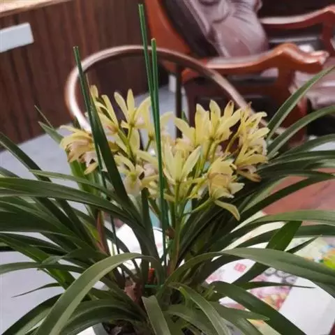 寒兰是兰科兰属的地生草本植物。茎为椭圆形;叶呈带状,尾部修长渐尖,叶脉较明显;每秆花枝开5-12朵,…