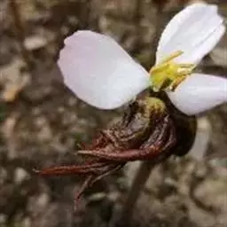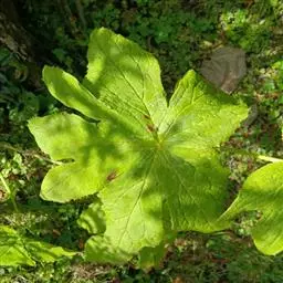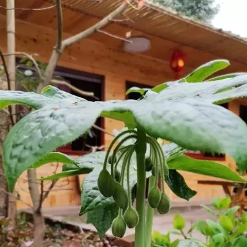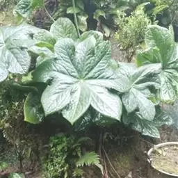小八角莲为鬼臼属多年生草本。地下根状茎粗短横生。地上茎单一,高10。20厘米,较细,光滑无毛。叶常2枚,互生,较小,形状多样,常为不明显的4—8浅裂;叶柄生于叶片的中部。伞形花序有花2—5朵,生于距叶片不远的叶柄近顶处。6—7月开淡赭红色花,8—9月结球形小果。分布于尼叉河、板桥等地。生长于海拔1200-1800米的山坡或沟谷。