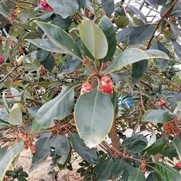 红花荷:金缕梅科红花荷属常绿乔木,高可达12米,嫩枝颇粗壮,叶厚革质,卵形,光滑无毛,有三出脉,叶…