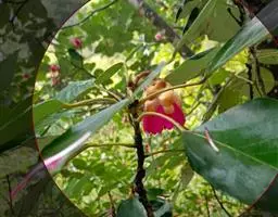 壳菜果是金缕梅科壳菜果属常绿乔木;小枝具节及环状托叶痕,叶宽卵形;萼筒花藏在肉质花序轴中与子房壁合生,…