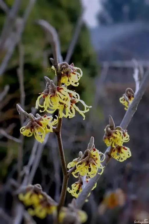 金缕梅是一种具有观赏价值的花木,树形雅致,树冠呈圆球 金缕梅观赏种植 形或圆卵形或阔圆球形,特别是花期早,花期从冬季到早春,正是一年中少花的时期。其花瓣纤细、轻柔,花形婀娜多姿,别具风韵;花色鲜艳、明亮,从淡黄到橙红,深浅不同;先花后叶,香气宜人,树形轻盈,花相靓丽,在冬日庭院中格外醒目。宜孤植,欣赏奇特的花瓣,婀娜的树姿,若再配以景石花草,一树一景,油然生情。亦可丛植群植,花开时节,满树金黄,灿若云霞,蔚为壮观。