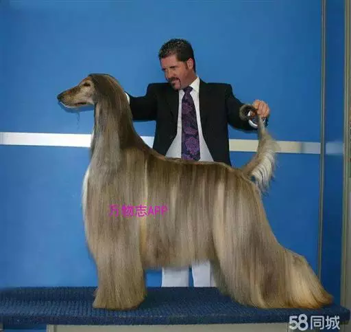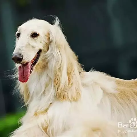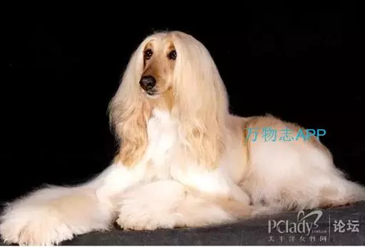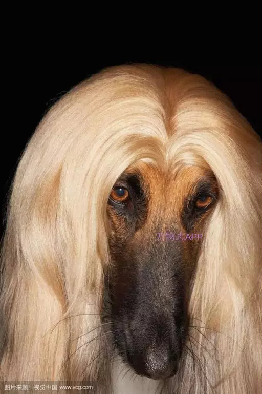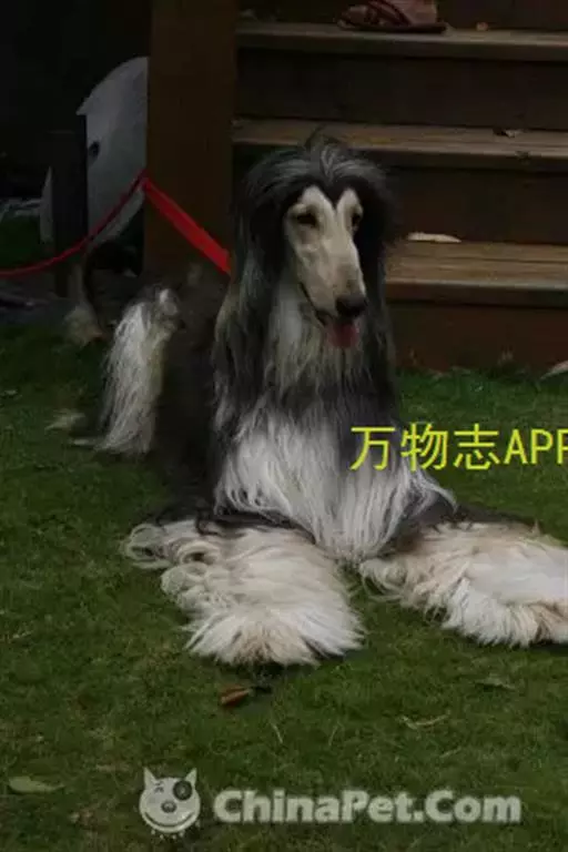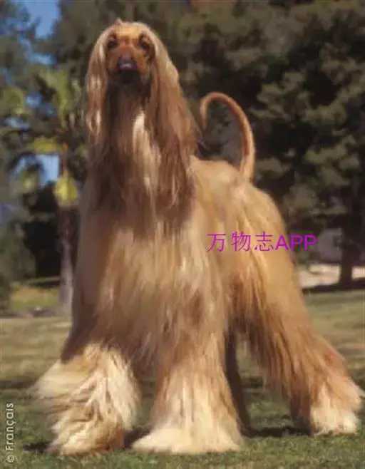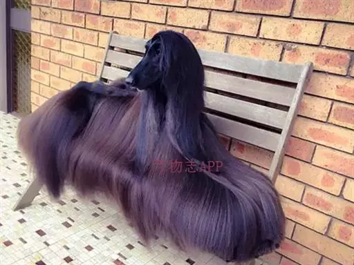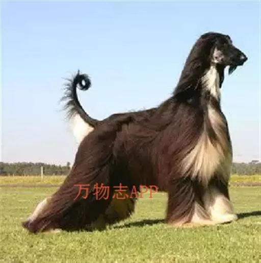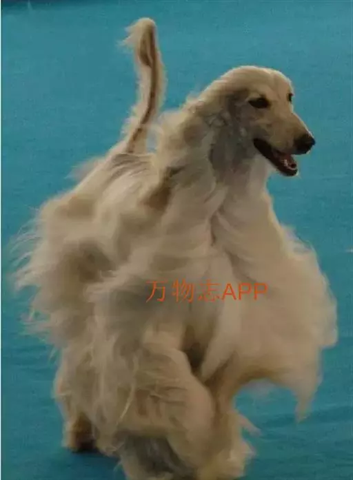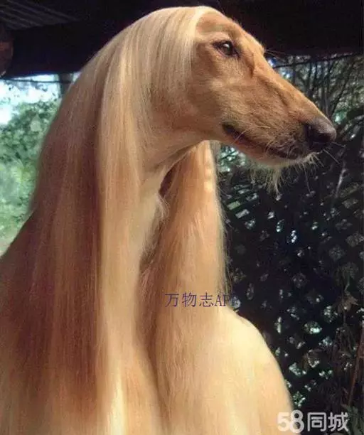 阿富汗猎犬全身披丝绢状的长毛,毛色鲜艳,呈多种颜色,背中线附近毛短,…