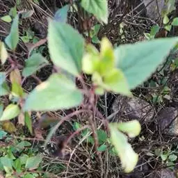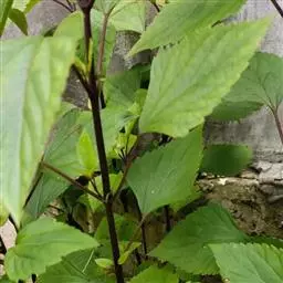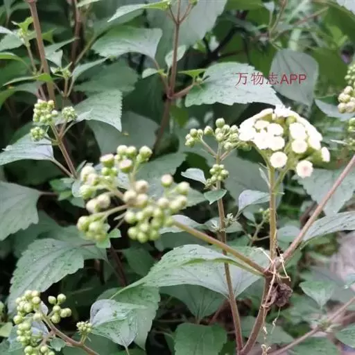 多年生草本,高30一90厘米。茎直立,分枝对生、斜上,茎上部的花序分枝伞房状;全部茎枝被白色或锈色短柔毛,上部及花序梗上的毛较密,中下部花期脱毛或无毛。叶对生,质地薄,卵形、三角状卵形或菱状卵形,长3.5—7?厘米,宽1.5—3厘米,有长叶柄,柄长4—5厘米,上面绿色,下面色淡,两面被稀疏的短柔毛,下面及沿脉的毛稍密,基部平截或稍心形,顶端急尖,基出三脉,侧脉纤细,边缘有粗大圆锯齿;接花序下部的叶波状浅齿或近全缘。头状花序多数在茎枝顶端排成伞房花序或复伞房花序,花序径2—4厘米或可达1.2厘米。总苞宽钟状,长3毫米,宽4毫米,含40—50个小花;总苞片l层或2层,线形或线状披针形,长3毫米,顶端渐尖。花托高起,圆锥状。管状花两性,淡紫色,花冠长3.5毫米。瘦果黑褐色,长1.5毫米,长椭圆形,5棱,无毛无腺点。冠毛白色,纤细,与花冠等长。花果期4—10月。
