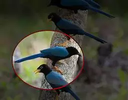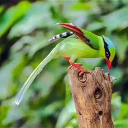 蓝绿鹊:中型鸟类,共有5个亚种。体长36-38厘米。尾长,嘴、脚红色。通体羽色主要为草绿色,…