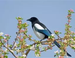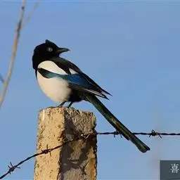 喜鹊:是鸦科、鹊属的一种鸟类。共有11个亚种。体长40-50厘米,雌雄羽色相似,…