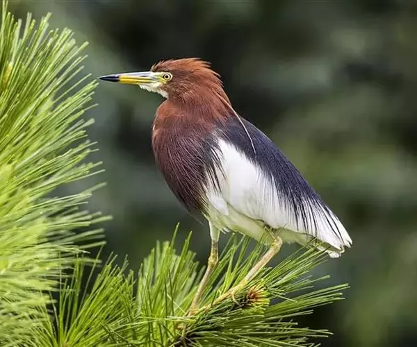 池鹭夏羽头、头侧、长的羽冠、颈和前胸与胸侧粟红色,羽端呈分枝状;冠羽甚长,一直延伸到背部,背、扁部羽毛也甚长,呈披针形,颜色蓝黑色,一直延伸到尾;尾短,圆形,颜色为白色。颏、喉白色,前颈有一条白线,从下嘴下面一直沿前颈向下延伸。下颈有长的栗褐色丝状羽悬垂于胸。腹、两胁、腋羽、翼下覆羽和尾下覆羽以及两翅全为白色。冬羽头顶白色而具密集的褐色条纹,颈淡皮黄白色而具厚密的褐色条纹,背和肩羽较夏羽为短,颜色为暗黄褐色,胸为淡皮黄白色而具密集粗状的褐色条纹,其余似夏羽。