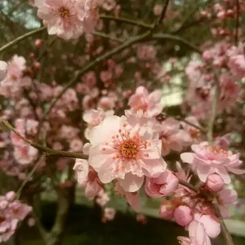 美人梅是蔷薇科李属的落叶小乔木。叶互生,呈广卵形或卵形,紫红色;花呈淡紫红色,半重瓣或重瓣,花叶同放,…