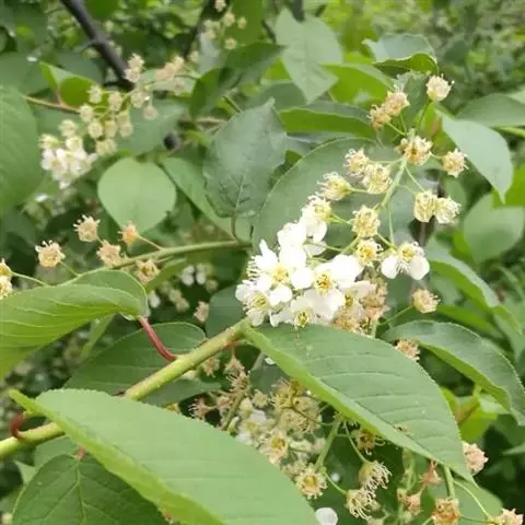 黑樱桃(学名:Cerasus maximowiczii (Rupr.) Kom.):乔木,高达7米,树皮暗灰色。小枝灰褐色,嫩枝淡褐色,密被长柔毛。冬芽长卵形,鳞片外面伏生短柔毛。叶片倒卵形或倒卵状椭圆形,上面绿色,除中脉伏生疏柔毛外,其余无毛,下面淡绿色,除中脉和侧脉上有伏生疏柔毛外,其余无毛。伞房花序,有花5-10朵,基部具绿色叶状苞片,花叶同开;花直径约1.5厘米;萼筒倒圆锥状;花瓣白色,椭圆形,长6-7毫米,宽5-6毫米;雄蕊约36枚;花柱与雄蕊近等长,柱头扩大,头状。核果卵球形,核表面有数条显著棱纹。花期6月,果期9月。