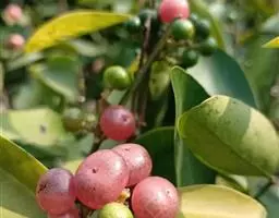 常绿灌木或小乔木。叶椭圆形,两端尖。果扁圆形,朱红色;味甜,可食。产自中国东南部,广东地区大量盆栽。