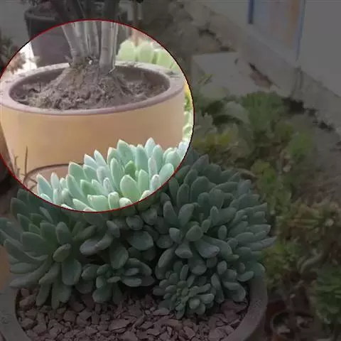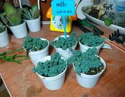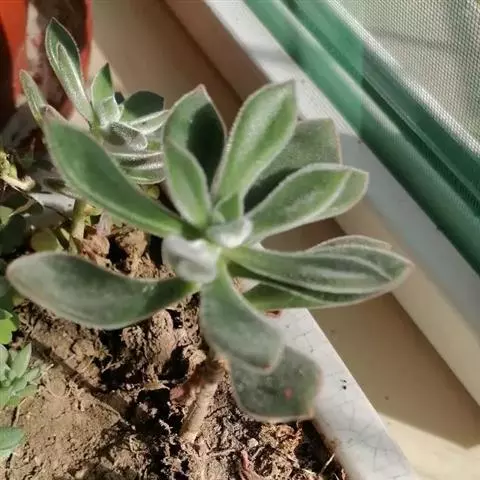 蓝黛莲是一种景天科厚叶草属植物。叶片呈略扁的圆柱形,排列成莲座状;颜色为灰绿色,…
