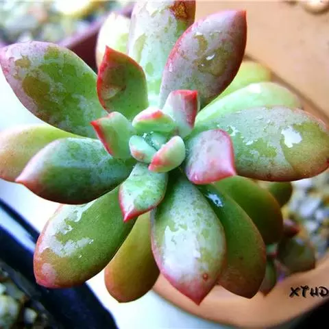 久米之舞,景天科拟石莲花属多年生无毛肉质草本植物。拉丁学名Echeveria spectabili…
