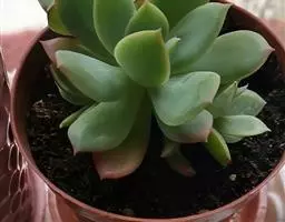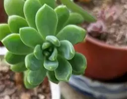 小红衣是景天科、拟石莲花属的一种多肉植物。叶片匙形,扁平细长,叶表具白粉,有明显的半透明边缘,…