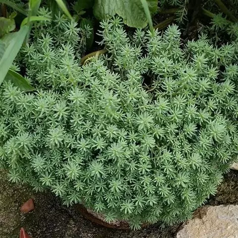 薄雪万年草别名矶小松,景天科景天属多年生草本植物,其细小的蓝绿色棒状叶片环绕生长于茎端,…
