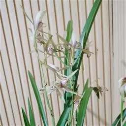 寒兰是兰科兰属的地生草本植物。茎为椭圆形;叶呈带状,尾部修长渐尖,叶脉较明显;每秆花枝开5-12朵,…
