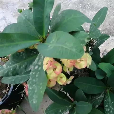 虎刺梅:别称铁海棠,是蔓生灌木植物。茎多分枝,长60-100厘米,直径5-10毫米,具纵棱,密生硬…